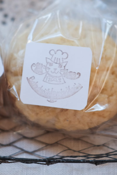 メロンパンのラッピング★手作りはんこで作ったラベルで、かわいく♪