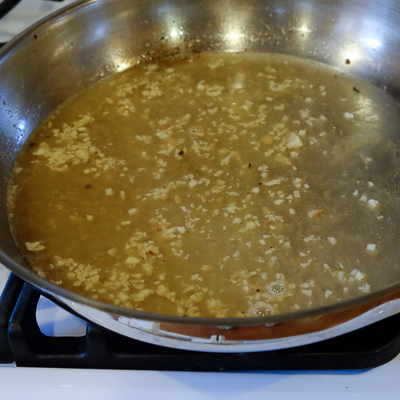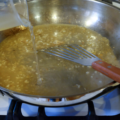 - チキンスープも入れて、スープの量が半分くらいになるまで煮詰める。