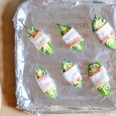 半分に切ったハラペーニョにチーズを詰めてベーコンを巻き、