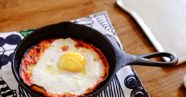 【レシピ】ロッジのスキレットを使って★トルティーヤで作る、たまご乗せピザ