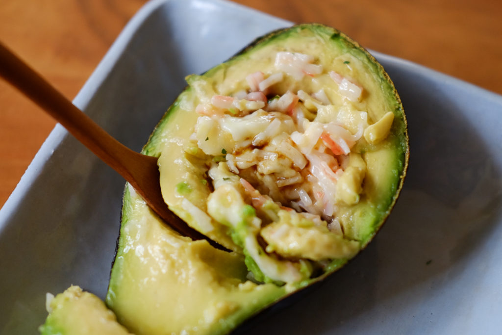 掲載されたレシピ記事➡【レシピ】アボカドボートのオーブン焼き*カニカマ詰め