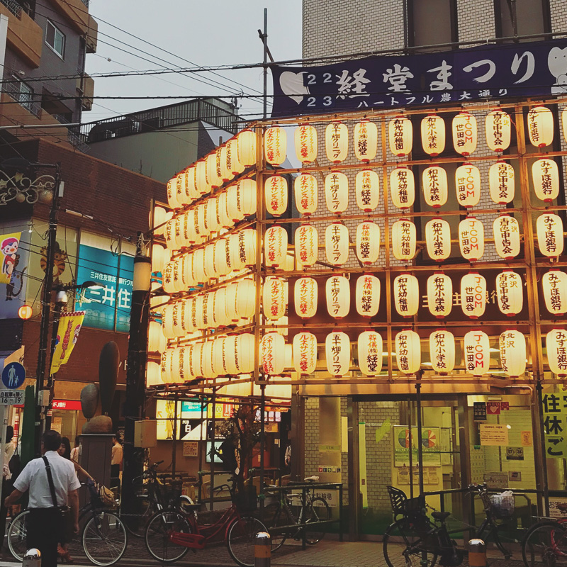 駅前にお祭りのちょうちんが並んでいて