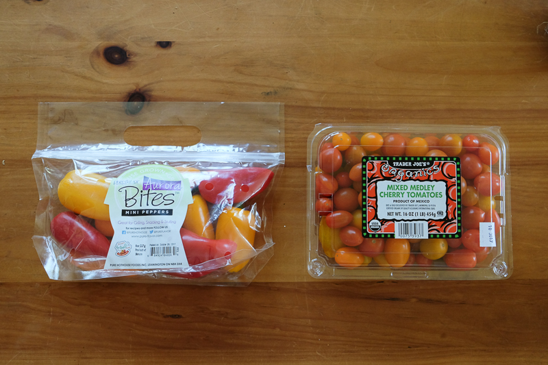 ★スイートミニペッパー($1.99)、オーガニックのミックスチェリートマト(454g入り、$3.99)