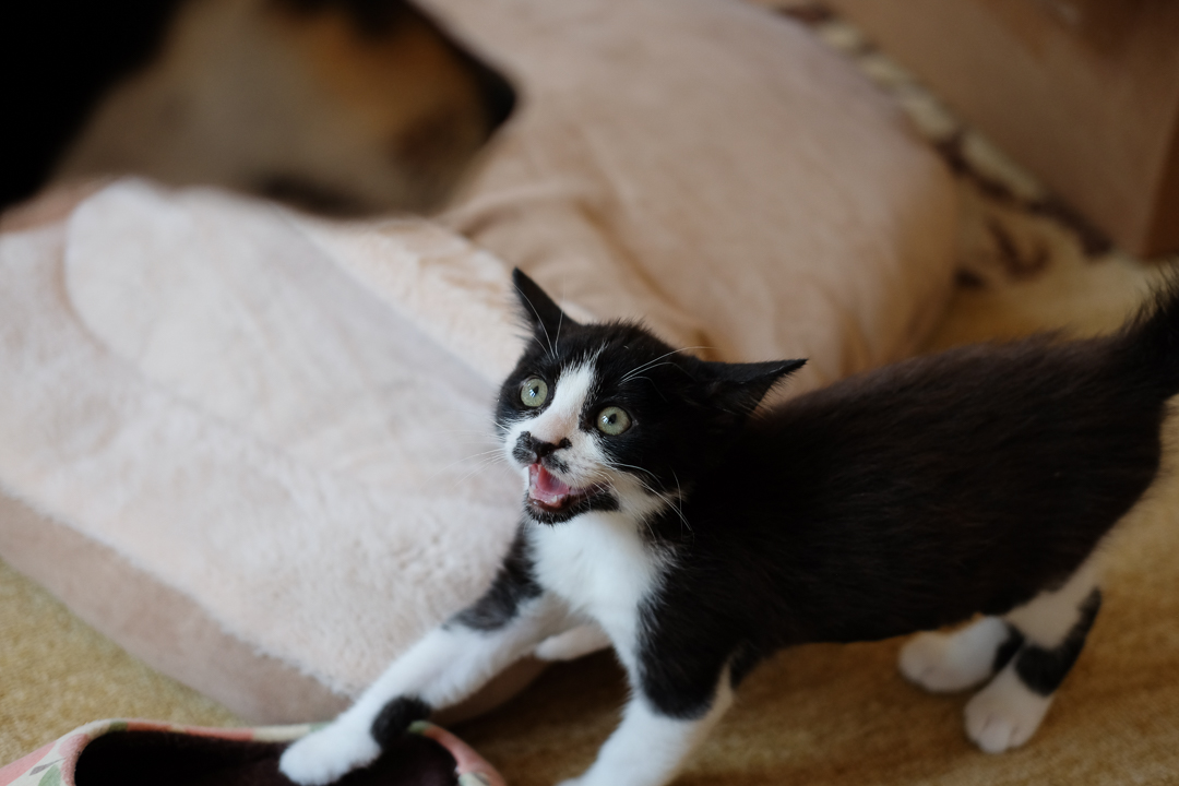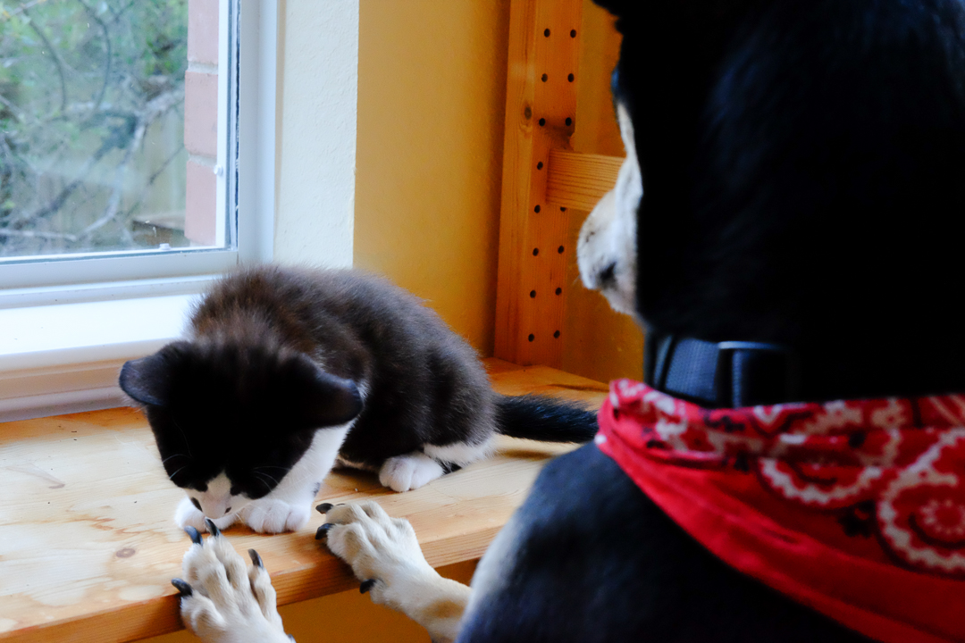 初めてラニと遭遇して、警戒するあんこちゃん。