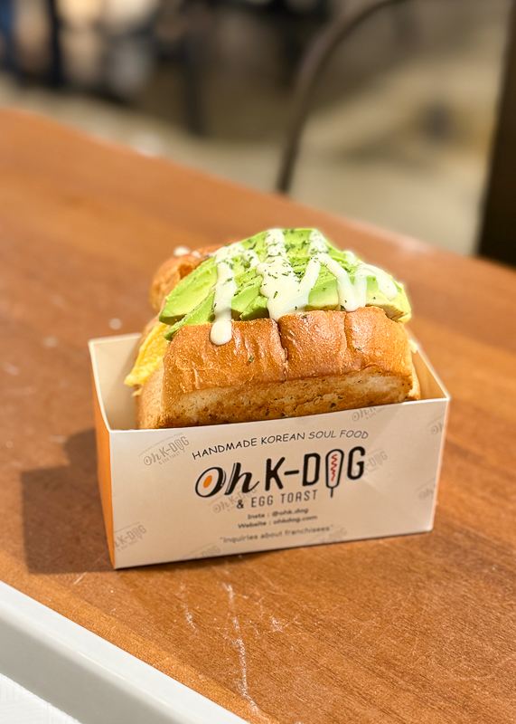 ガーリックトーストに、たっぷりの卵焼きとアボカド。