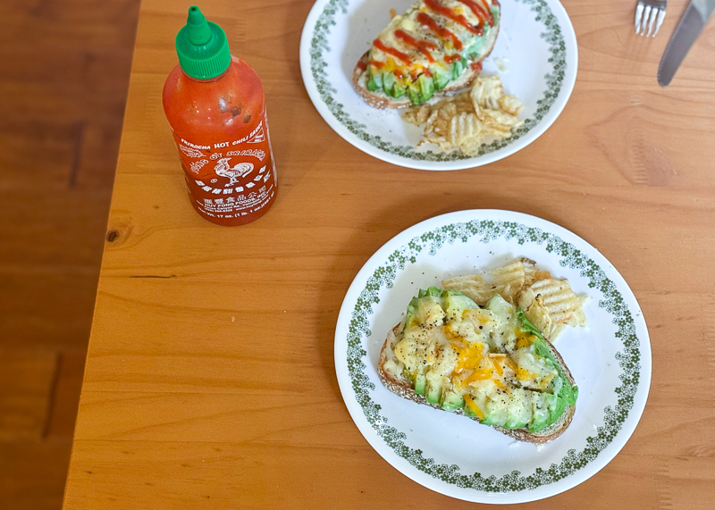 1. ごはんにたっぷりチリをかけ、目玉焼きを乗せる。