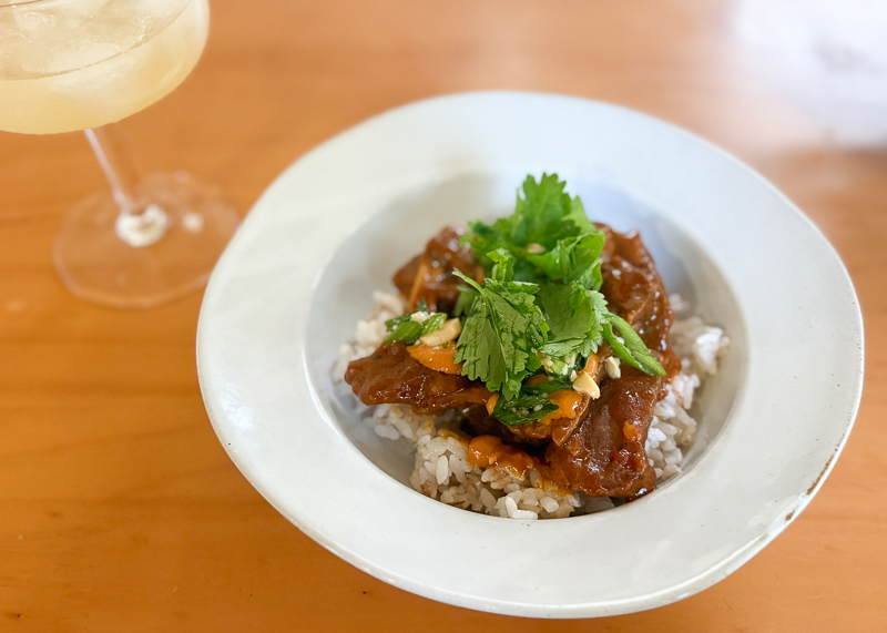 牛肉をレッドカレーペーストで煮込み、ピーナツソース、そしてチリとナンプラーを和えたソースをかけたもの。