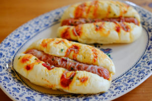 ピザ味のソーセージパン*フライドオニオン入りの生地で風味アップ♪
