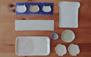 【陶芸】最近作った器たち*猫型のミニ皿、にくきゅう小皿、食パン皿、レース皿、など♪