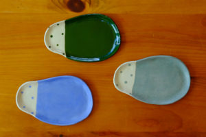 【陶芸】最近仕上がってきたお皿たち♪ 水玉の変形皿・3色3種類