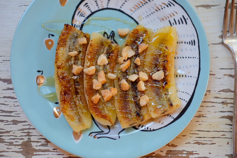 今日の朝ごはん。 バナナを半分に切って、それをさらに半分にスライスしたら ココナッツオイルを熱したフライパンでこんがり焼いて あとははちみつをたらーりかけて、ナッツを散らせば、出来上がりです。…