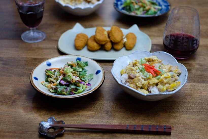 親子丼とチョップドサラダの献立、と2016年のボージョレーヌーボー