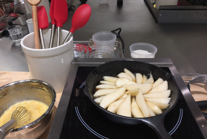 スキレットで作る「アップサイドダウンケーキ」や「チョコレートタルト」などを習いました♪@Sur La Table クッキングスクール