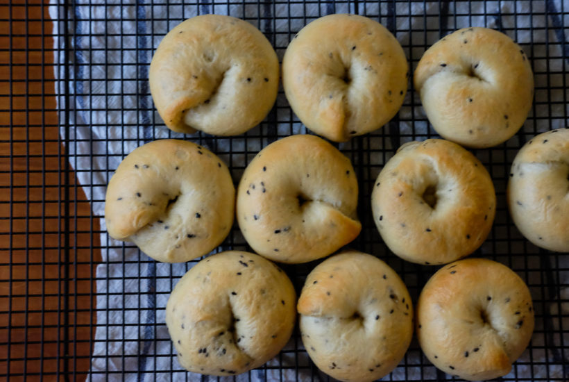 [ad#ad-top] 胡麻入り生地にサツマイモを巻き込んだ、ベーグルを作ってみました。 秋にぴったりでしょ。🎵