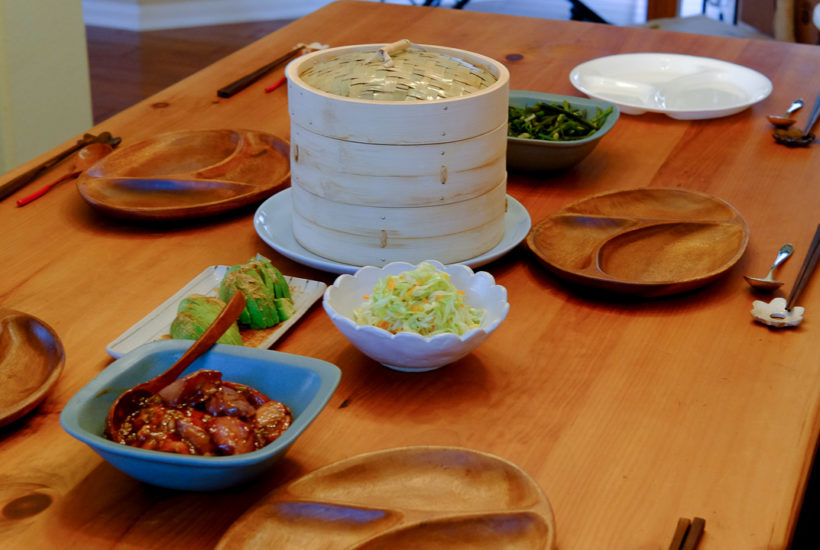 おもてなし*蒸篭で蒸したシュウマイ、空芯菜の炒め物、アボポン、など♪