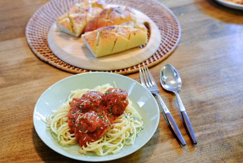 [ad#ad-top] 昨日のごはん。 オットが作ってくれた、ミートボールスパゲティ、とガーリックチーズブレッド(こちらはわたしが作りました)。 インスタグラムでも、もう何度も紹介しているけれど……