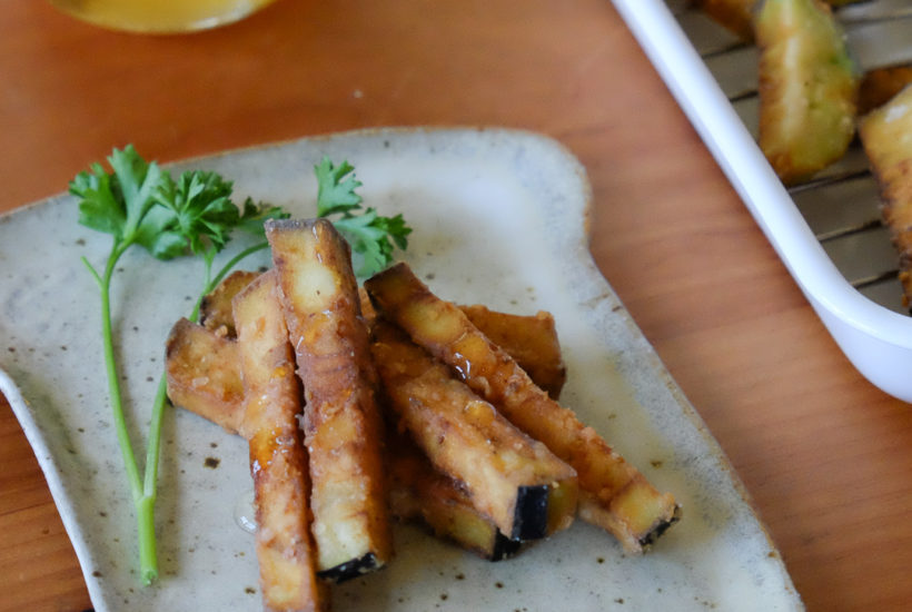 【レシピ】(スペインの小皿料理タパス)なすのフリッター・はちみつがけ