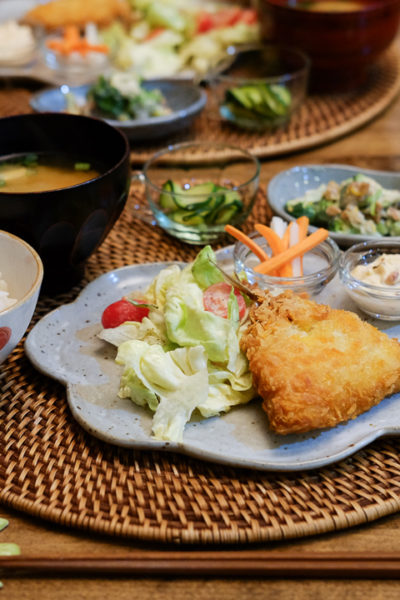 アジフライwith手作りタルタルソース、ブロッコリーサラダ、ズッキーニのナムル、などの献立