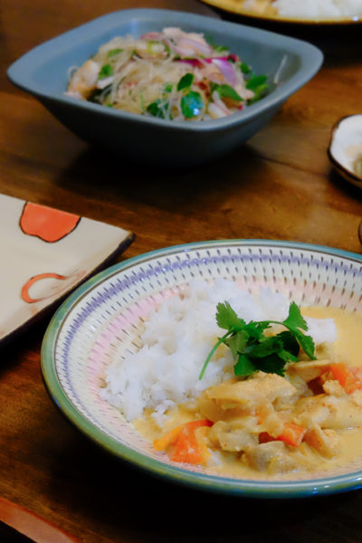 [ad#ad-top] 何日か前のごはんです。 久々のタイ料理。 大好きなパナンカレー、それから春雨のサラダ、ヤムウンセン。…