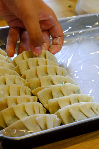 — もつ鍋&餃子パーティ– 餃子はみんなで作ると、楽しいね。