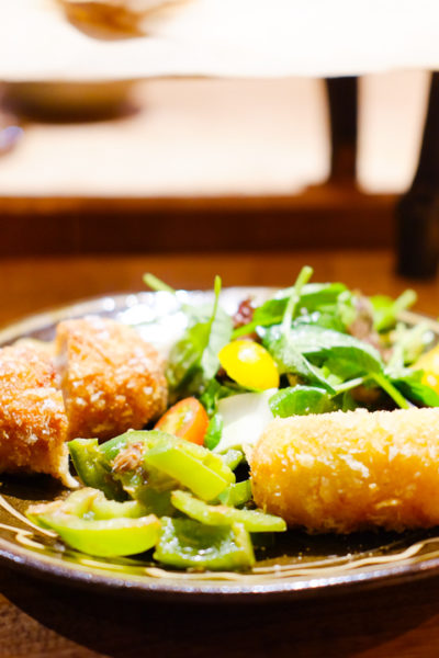 Week神山さんでの夕食(7/5/2016)・金時豚のメンチカツなど
