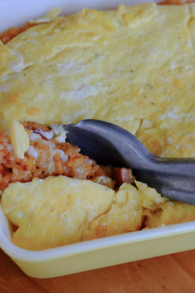 先週、わたしがクッキングクラスに行った日のこと。 家族のために、 どーんと作って、スプーンで好きなだけすくって食べられる、 スコップオムライスを用意しました。
