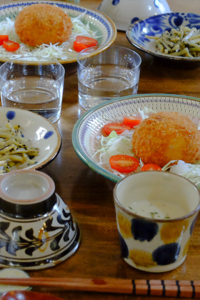 巣ごもり風スコッチエッグ、さつまいものきんぴら、白菜のポタージュ、の献立🌼