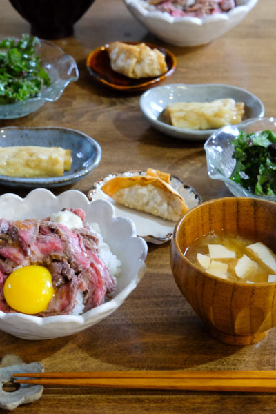 [ad#ad-top] 数日前のごはんです♪ ・ローストビーフ丼 ・なすの揚げびたし…