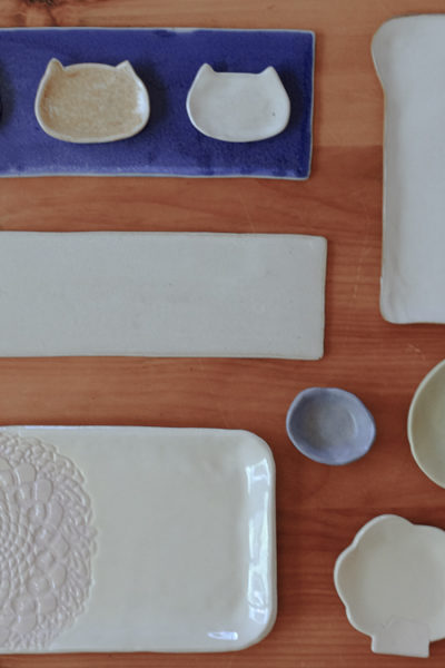 【陶芸】最近作った器たち*猫型のミニ皿、にくきゅう小皿、食パン皿、レース皿、など♪