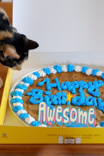 アメリカでは結構ポピュラーな、「クッキーケーキ」、とねこたち、それから国際運転免許のお話し