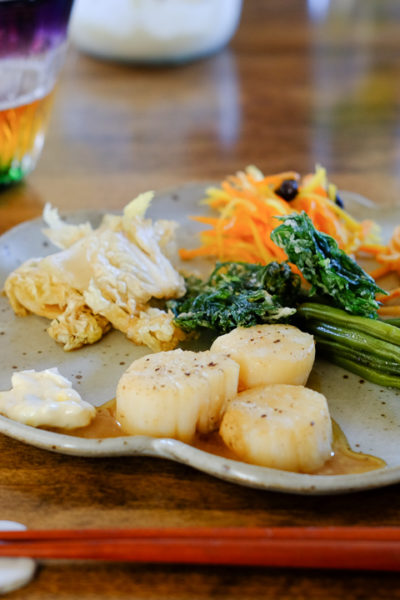 ホタテのバター焼きがメインの、ワンプレートディナー