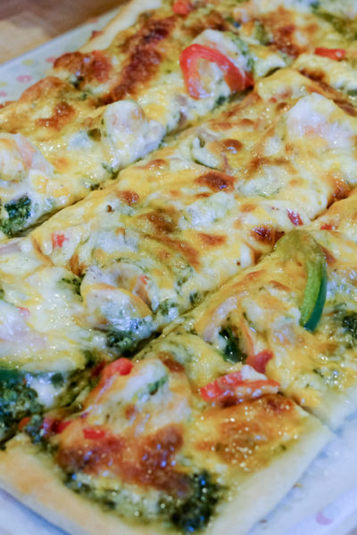 大のお気に入り♪ パクチーソースの海老ピザ