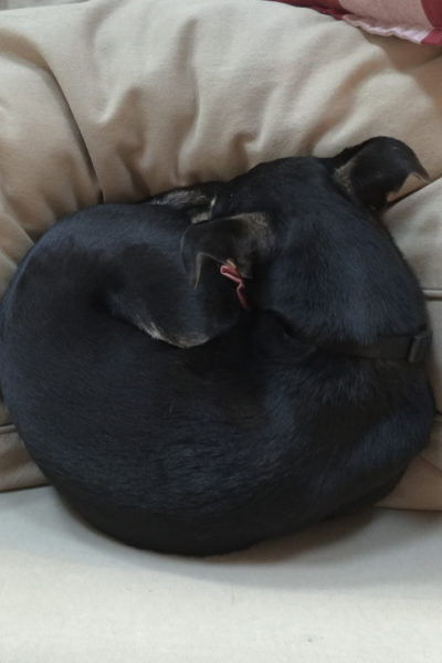 [ad#ad-top] 寒がりラニ子。 朝はいつも、こんな風に丸まってます。 (ちなみに、この日は暖かい日で、室温22℃くらい)