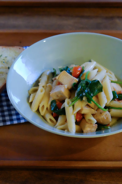 【レシピ】 鶏むね肉とほうれん草のペンネ・ワインクリームソース
