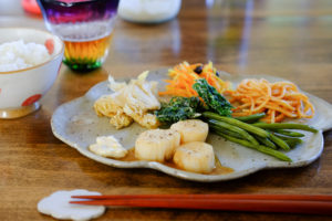 ホタテのバター焼きがメインの、ワンプレートディナー